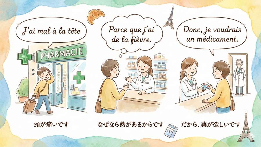 多くの薬局では英語を話せるスタッフもいますが、フランス語で症状を説明できれば、より細かなニュアンスまで伝えることができて安心です。特に慢性的な症状や複雑な医療歴がある場合は、事前に重要な医療用語を調べておくことをおすすめします。